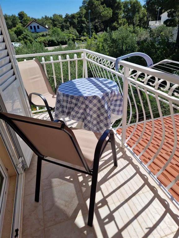 BILO - ložnice s manželskou postelí, kuchyně s rozkládací sedačkou vybavená mikrovlnnou troubou, jídelním stolem, TV, klimatizace, koupelna se sprchovým koutem a toaletou, balkon (1. nebo 2. patro)