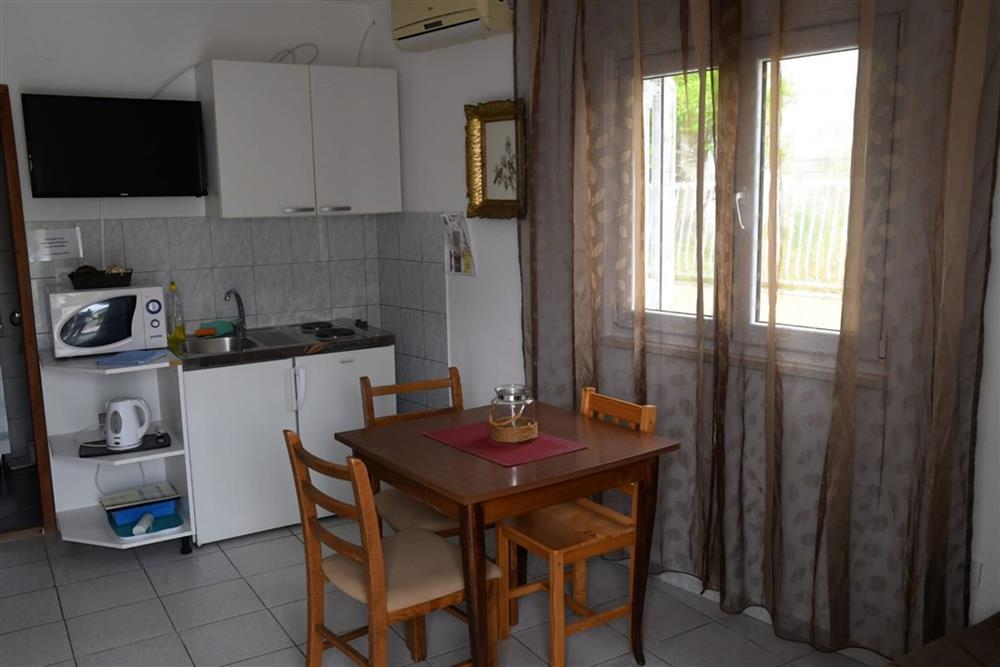 BILO – ložnice pro 2 osoby, obývací pokoj s rozkládací pohovkou (vhodná pro 2 děti nebo 1 dospělou osobu) a kuchyňským koutem, vlastní sociální příslušenství, TV/SAT, klimatizace, balkon.