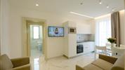 Pokoj - dvoulůžkový pokoj má vlastní sociální příslušenství, kuchyňský kout, TV/SAT, trezor, klimatizaci a balkon. Mono - obývací pokoj s manželskou postelí a rozkládacím dvoulůžkem, kuchyňský kout, vlastní sociální příslušenství, klimatizace, balkon. Bilo - obývací pokoj s rozkládacím dvoulůžkem a kuchyňským koutem, ložnice s manželskou postelí, vlastní sociální příslušenství, klimatizace, balkon. Trilo - obývací pokoj s rozkládacím dvoulůžkem a kuchyňským koutem, ložnice s manželskou postelí, pokoj s manželskou postelí nebo dvěma samostatnými lůžky, vlastní sociální příslušenství, klimatizace, balkon. Trilo plus má v ložnici navíc další samostatné lůžko a 2 sociální příslušenství.