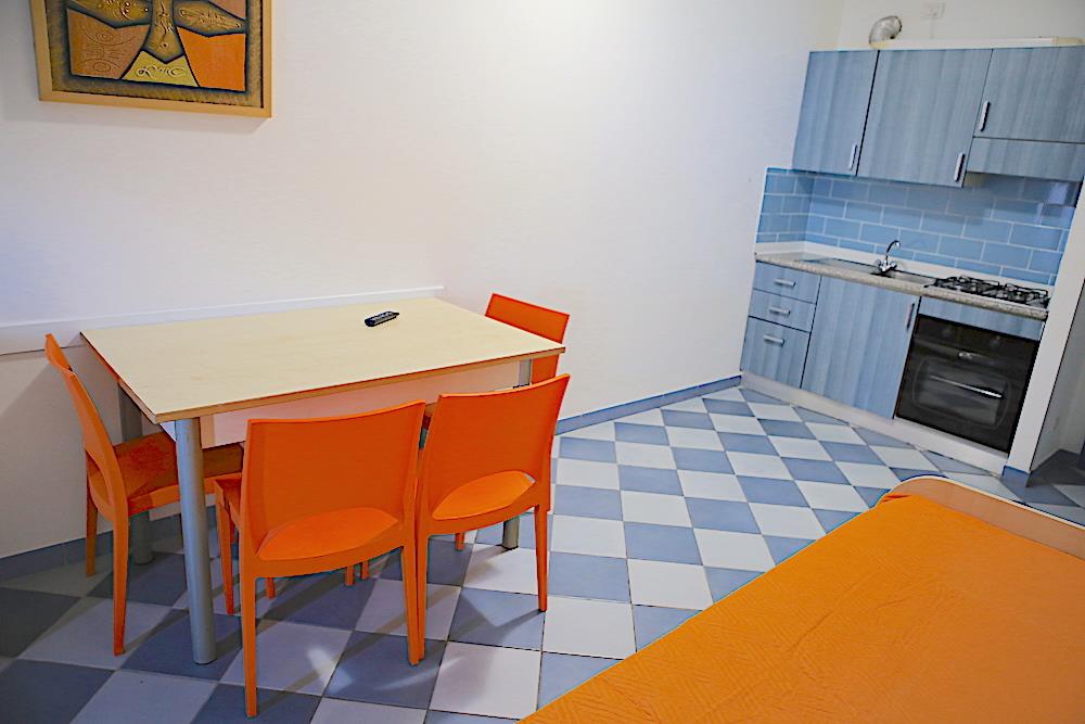 Trilo - obývací pokoj s rozkládacím dvoulůžkem nebo vysunovacím lůžkem, kuchyňský kout, ložnice s manželskou postelí, pokoj se dvěma samostatnými lůžky, vlastní sociální příslušenství, klimatizace (na vyžádání, za příplatek), balkon. Apartmán trilo* má boční výhled na moře.