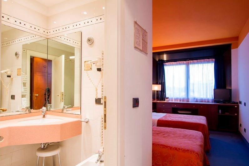 dvoulůžkové pokoje s možností až dvou přistýlek mají vlastní sociální příslušenství, telefon, TV/SAT, minibar, fén, klimatizaci a balkon.