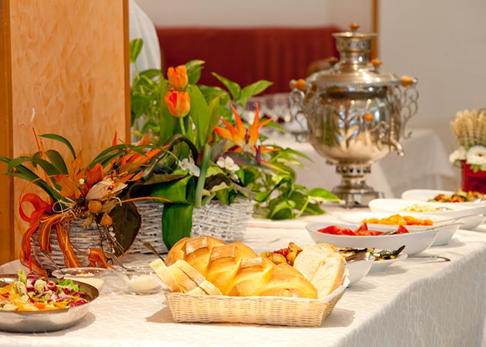 plná penze. Snídaně formou bufetu; obědy a večeře servírované, výběr z několika menu, bez nápojů v ceně.